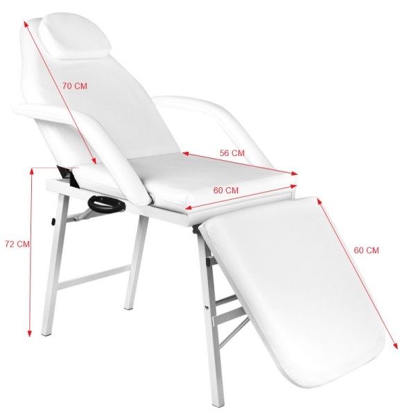 A szék eltávolítható karfákkal és fejpárnával rendelkezik. Az ülőfelület könnyen tisztítható minőségi bőrből készült, mely ellenáll az alacsony alkoholtartalmú fertőtlenítőszereknek.