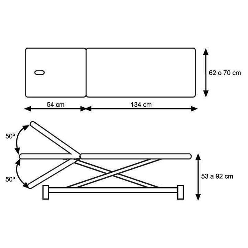 A CH 0127 AR - 2 szekciós hidraulikus masszázságy állítható magassággal, hidraulikusan emelhető és süllyeszthető. A fejtámla légrugóval állítható -25° és 85° között. Az ágy papírtartóval rendelkezik.
