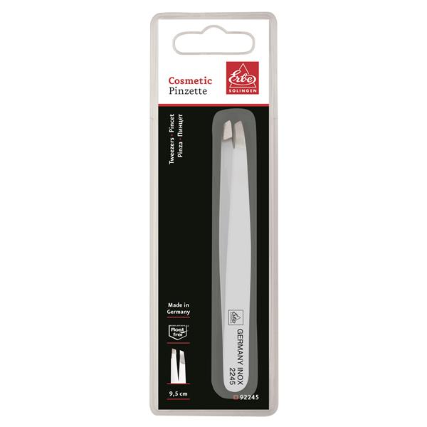 Fehér, egyenes csipesz, 9 cm. A csipesz rozsdamentes acélból készült, sokoldalú eszköz az arc- és testápoláshoz. Főleg kis szemöldökszőrök kihúzására használják. Tartós, kovácsolt acélból készült. A csipesz széles fogófelülete lehetővé teszi egy, vagy több szemöldökszőr gyors és precíz kihúzását.