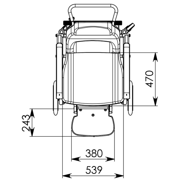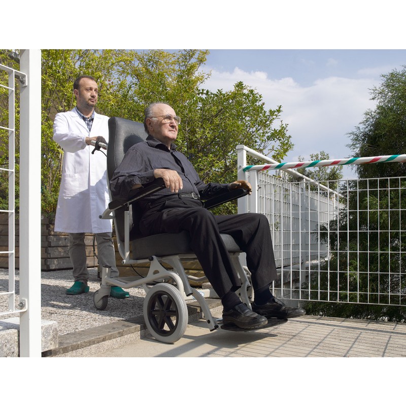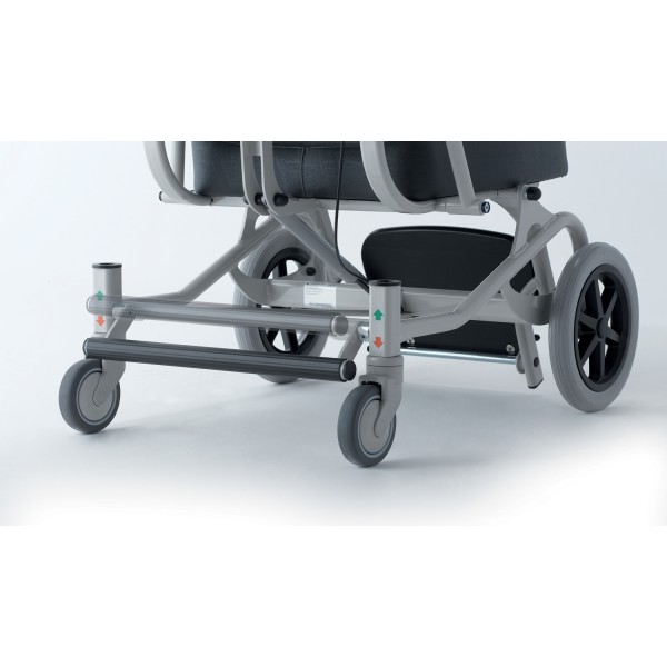 Ez 30 cm átmérőjű tömör első kerekekkel érhető el. Ha a láb teljesen érinti a padlót és a háttámlát, ez lehetővé teszi a páciens számára, hogy biztonságosan végezzen minden olyan tevékenységet, amely üléssel vagy állással jár. Ez a pozíció aktiválja a kiegészítő zárrendszert is.