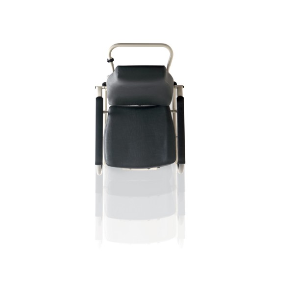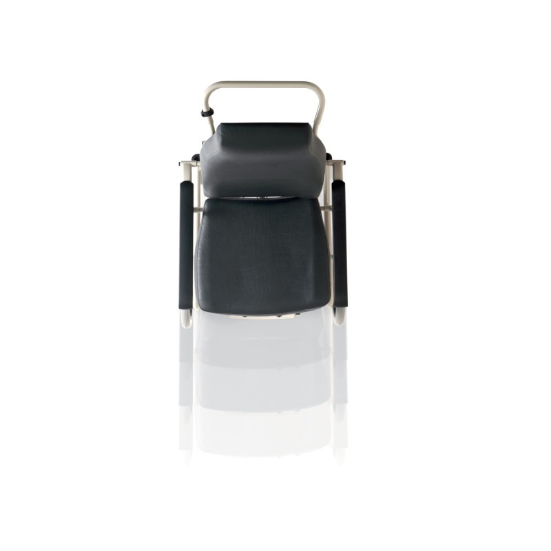 A kórházi szék tolókarral és praktikus hátsó zsebbel rendelkezik.