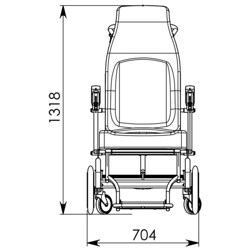Kórházi szék a betegek kórházi, vagy közösségi környezetben történő szállítására, alkalmas felvételi, sürgősségi és kritikus (H&E) osztályokra, valamint osztályokra történő átszállításra.