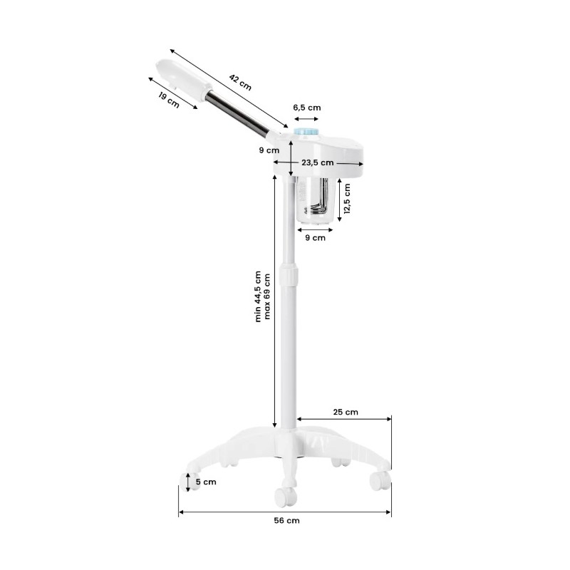 Többfunkciós gőzölő forró gőzzel és ózonnal, görgőkkel.
